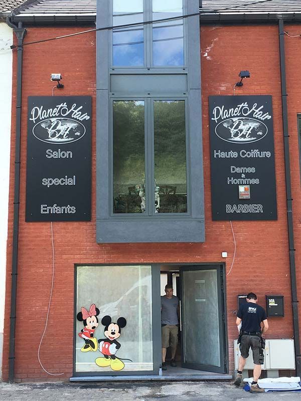 Nous pouvons vous proposer une enseigne en simple panneau comme une enseigne avec boites lettres, éclairage indirect, …